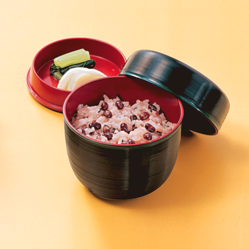 八寸、お造り、天ぷら、煮物、酢の物、一品、赤飯、漬物、吸物、フルーツからなるお料理です。縦24cm×横49cm
